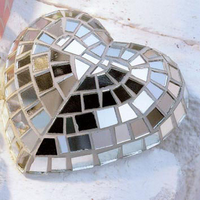 Aus einem flachen Styroporherz (15 cm) wird mit Spiegelmosaik ein auffallend schönes Dekorationsstück für Haus und Balkon. Dieses spiegelnde Herz fällt immer auf. Allerdings heißt es vor dem Loslegen einen Plan zu machen, damit die Spiegel richtig liegen, denn nur dann sieht es gut aus.