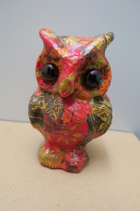 Eulen sind ja eigentlich als nachtaktive Tiere bekannt, doch seit geraumer Zeit sieht man sie immer häufiger auch am Tag. Das ist kein Naturphänomen, sondern schlicht und einfach der Beweis dafür, dass Eulen absolut im Trend sind. Ob auf T-Shirts, als Schmuckanhänger oder als Wohnaccessoires - überall schaut einem das niedliche Tier mit seinen großen Augen entgegen. Daher möchten wir euch zeigen, wie ihr diese schöne Eule aus Pappmaché mit Decopatch-Papier gestalten könnt.