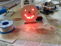 Normalerweise gibt es ja Smileys nur am Bildschirm (oder bei den Midi-Maze Kursen des Ferienpasses). In diesem Kurs aber kann man selbst ein solches Werkstück mit nach Hause nehmen. Der Smiley kann mittels Schaltern seine Stimmung fröhlich (:-)) zu schlecht gelaunt (:-() ändern und seine Augen flackern je nach Helligkeit im Raum. Damit der Smiley auch gut gelaunt grinst, sind einige Lötkenntnisse wünschenswert. Da auch mit Acrylfarben gearbeitet wird, ist geeignete Arbeitskleidung hilfreich!