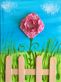Bei diesem Bild auf Keilrahmen werden verschiedenste Techniken verwendet. Von Schwammtechnik, über das Erlernen des richtigen Pinselstriches bis hin zur traditionellen Faltkunst Origami. Von allem ist etwas dabei. Diese Collage erhält bestimmt einen besonderen Platz in eurer Wohnung.