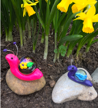 Ihr kennt Schnecken nur als schleimige, gefräßige Lebewesen, die euren Salat im Garten fressen? Bei uns knetet ihr aus FIMO süße Schnecken mit einem Haus aus Glasmurmeln. Sie verschönern jeden Blumentopf, ohne die Pflanzen zu fressen.
