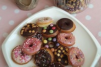 Homer Simpson liebt sie und Donald Duck hat auch schon welche gebacken: Donuts. Die amerikanischen Schmalzkringel oder Krapfen mit dem typischen Loch in der Mitte sind einfach rundum köstlich. Das Kultgebäck aus den USA ist die zuckersüße Verführung pur. Die Zubereitung ist kinderleicht. Wir backen luftig-zarte Teigkringel, die ihr anschließend mit Schoko-Glasur und bunten Zuckerstreuseln dekorieren könnt. Donuts sind ein unglaublicher Genuss. Kaum einer kann diesem saftigen Gebäck widerstehen!