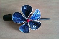 Auch Haarspangen lassen sich mit Nespressokapseln ausgefallen dekorieren. Hier eine bildschöne Haarspange mit einer großen Blume als Verzierung. Die Blume besteht aus fünf Aluminiumblüten und einer Zierperle. Ein toller Hingucker für jede Gelegenheit. Die Haarspangen können in vielen Farben (blau, grün, schwarz etc.) gefertigt werden. Jede Haarspange ist ein Unikat.