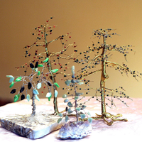 Der Draht ist bereits zu einem Stamm gedreht und auf eine Steinplatte geklebt. Du musst nur noch mit dem Auffädeln der Perlen beginnen.