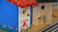 Jedes Kind erhält von den Kursleitern einen Bausatz für einen Nistkasten. An verschiedenen Stationen, die die Kinder durchlaufen, werden die Hölzer zugeschnitten und zusammengenagelt. Mit der Festlegung des Durchmessers für das Einflugloch legen die Kinder selbst fest, für welche Vögel ihr Haus später als Nistplatz geeignet sein soll. Wer möchte, kann sein Haus auch noch bemalen. Zum Schluss nimmt jeder einen selbst gebauten Nistkasten mit nach Hause, der hoffentlich einen schönen Platz im Garten und bald Bewohner finden wird.